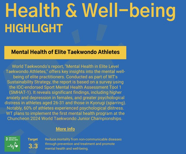 Importantly, World Taekwondo is exploring a rule change to include a psychologist within the Member National Association (MNA) team accreditation allowance at WT-promoted and recognised championships, marking a significant step toward embedding mental health support in elite competition environments.